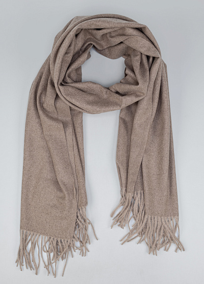 Однотонный женский шарф в тёплом бежевом оттенке — классический и универсальный аксессуар, который гармонично впишется в любой гардероб. Мягкая, приятная к коже фактура делает его комфортным в носке, а плотное полотно позволяет легко драпировать шарф различными способами. Бахрома по краям придаёт образу нежный и аккуратный штрих, подчёркивая естественную элегантность модели.