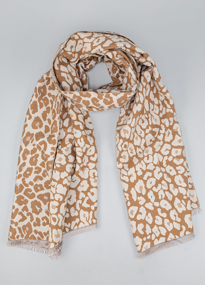 Стильный женский шарф с крупным леопардовым рисунком в тёплых карамельно-бежевых оттенках — универсальный аксессуар, который легко вписывается как в повседневные, так и в более элегантные образы. Мягкая ткань приятно драпируется, создавая объём и аккуратные складки. Контраст светлого фона и насыщенных коричневых пятен делает изделие выразительным, но при этом ненавязчивым.