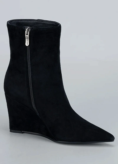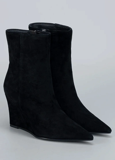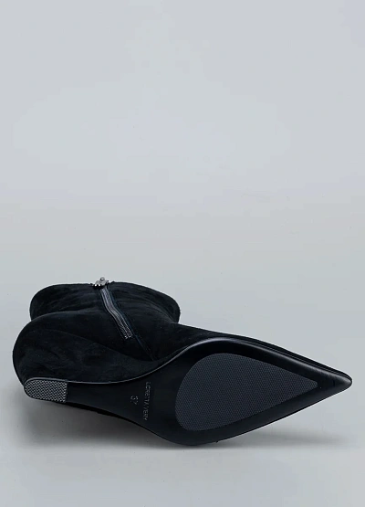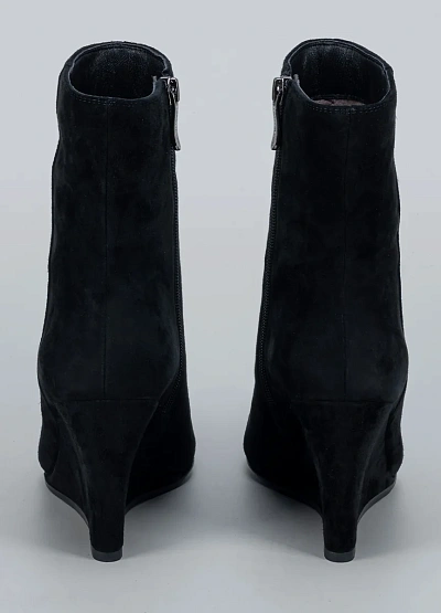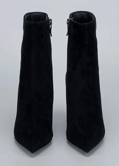 • Женские ботильоны Loretta Very — стильное воплощение современного минимализма. Выполненные из мягкой чёрной замши, они подчёркивают изящество ноги и создают элегантный силуэт. Заострённый носок и скрытая танкетка визуально вытягивают фигуру, добавляя высоты и утончённости, при этом сохраняя комфорт. Молния сбоку обеспечивает удобство при надевании, а мягкая внутренняя отделка делает модель идеальной для повседневной носки в прохладный сезон.