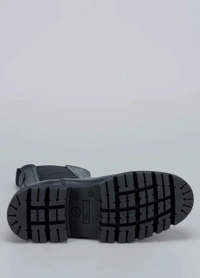 • Женские ботинки Tamaris челси из гладкой чёрной кожи — стильная база для холодного времени года. Эластичные вставки обеспечивают удобство при надевании, а рельефная подошва — устойчивость и надёжность.