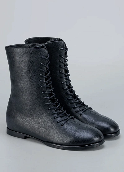 • Женские ботинки Loretta Very сочетают в себе изысканную простоту и современный характер. Модель выполнена из натуральной кожи с деликатной текстурой, придающей мягкий сатиновый блеск. Лаконичный дизайн с аккуратной шнуровкой и боковой молнией обеспечивает удобство при ежедневной носке, а высокая посадка визуально удлиняет ногу и подчёркивает элегантность образа.
