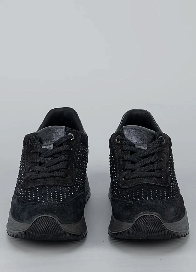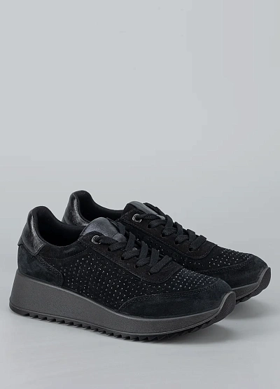 Стильные женские кроссовки на приподнятой платформе — универсальная модель, идеально подходящая для активного дня и комфортного повседневного ношения. Верх выполнен из мягкого велюра в сочетании с лаконичными кожзамовыми вставками, создающими аккуратный и современный силуэт. Миниатюрные декоративные стразы на боковых частях добавляют обуви женственности и лёгкого блеска. Лёгкая амортизирующая подошва обеспечивает мягкость шага и поддержку стопы в течение всего дня.