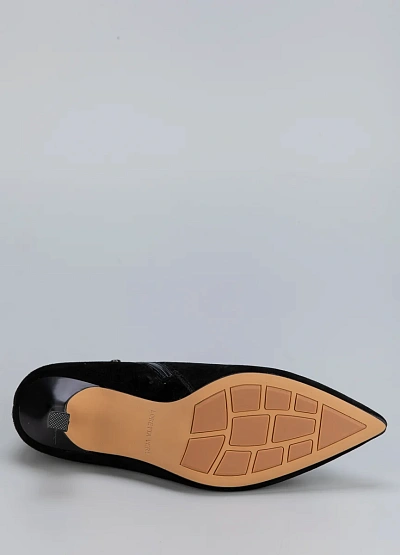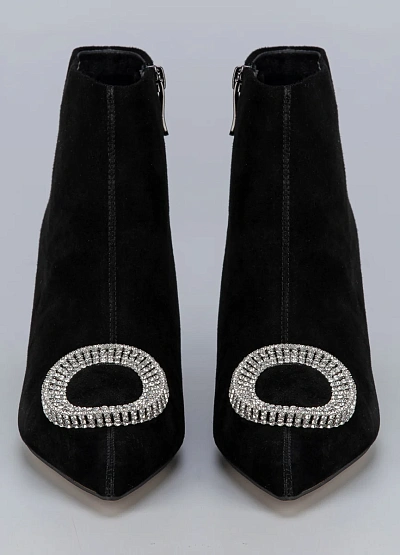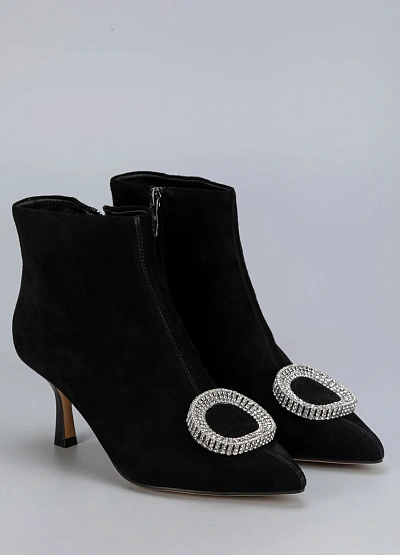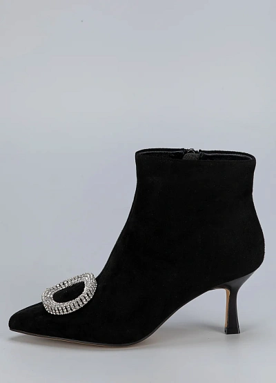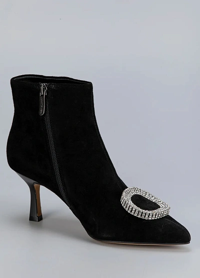 • Элегантные женские ботильоны Loretta Very — выбор для тех, кто ценит изысканность и блеск в каждой детали. Выполненные из бархатистого черного велюра, они подчёркнут ваш утончённый вкус и прекрасно дополнят как вечерний, так и повседневный образ. Особое внимание привлекает декоративная брошь с кристаллами на мысе — эффектный акцент, добавляющий нотку гламура. Устойчивая шпилька средней высоты обеспечивает изящность силуэта без ущерба для комфорта.