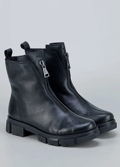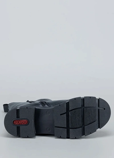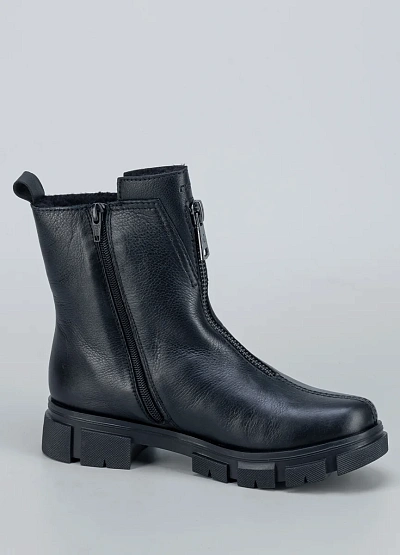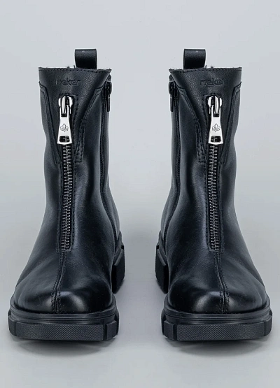• Женские ботинки Rieker — стильное сочетание минимализма и практичности. Модель выполнена из черной матовой кожи с легкой текстурой, что придает образу сдержанную элегантность. Удобная колодка и массивная подошва с глубоким протектором обеспечивают устойчивость и комфорт в повседневной носке. Молния сбоку делает обувь практичной и удобной в использовании, а аккуратный силуэт позволяет сочетать ботинки с любыми элементами гардероба.