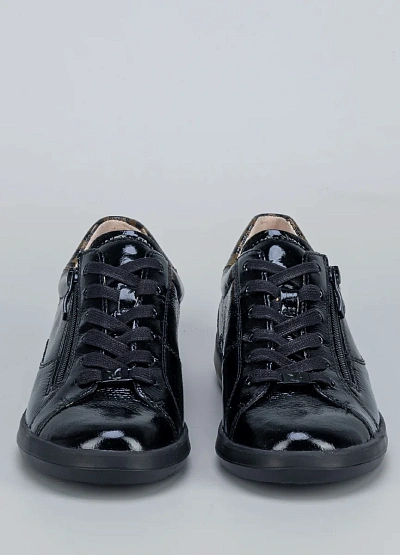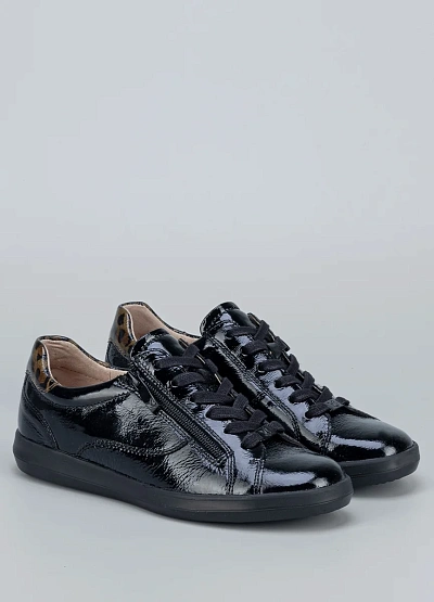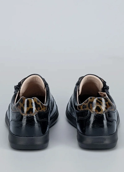 Эффектная модель из лаковой кожи с леопардовым акцентом. Идеально сочетает удобство и трендовую подачу.