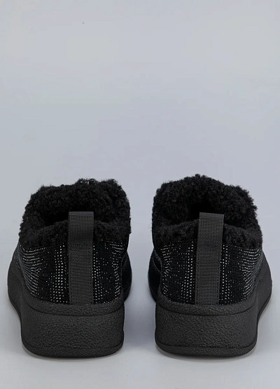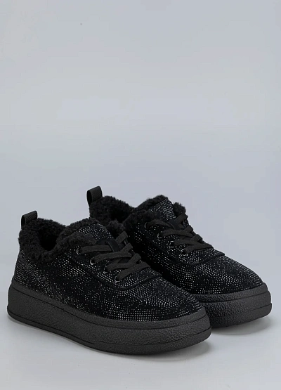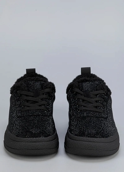 • Женские утеплённые кеды Franco Manatti с внешней отделкой из чёрного текстиля и декоративными стразами — стильное и практичное решение для прохладного времени года. Внутренний меховой слой обеспечивает тепло, а блестящая поверхность придаёт образу яркий акцент.