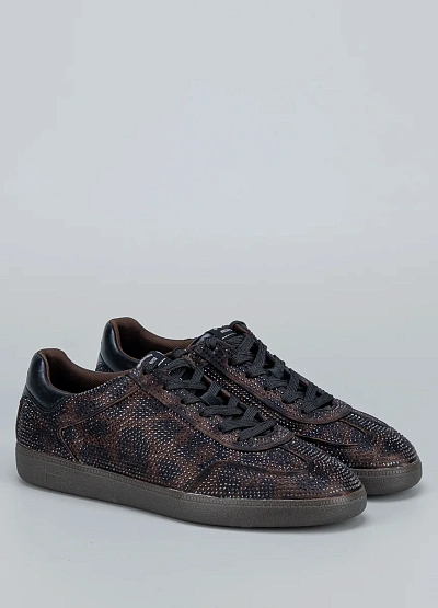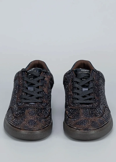 Яркая модель с леопардовым узором и сияющими стразами. Эти кроссовки создают выразительный акцент и подчёркивают индивидуальность без компромиссов по удобству.