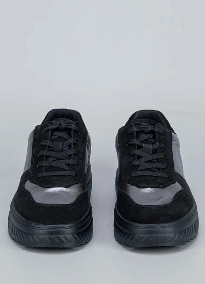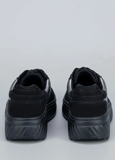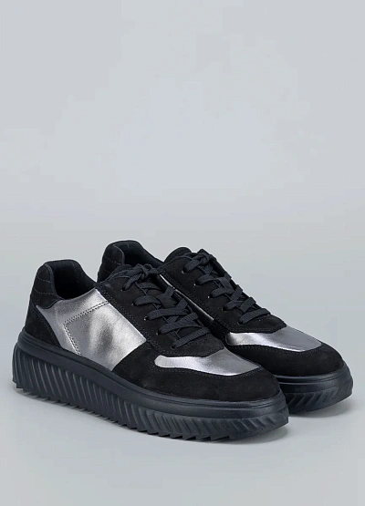 Модель в чёрно-серебристом исполнении создаёт динамичный и модный образ. Удобная платформа добавляет комфорта при ходьбе.