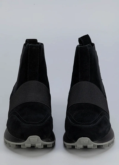 • Женские ботинки Franco Manatti в спортивном стиле, сочетающие комфорт кроссовок и элегантность городской обуви. Модель выполнена из замши и дополнена эластичными вставками, которые обеспечивают удобную посадку и легкость при надевании. Широкая резинка спереди не только фиксирует стопу, но и добавляет стильный акцент. Рельефная подошва с массивным протектором гарантирует отличное сцепление и устойчивость в любую погоду.