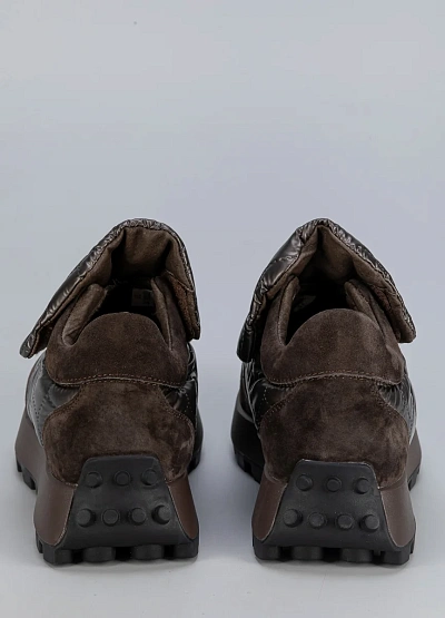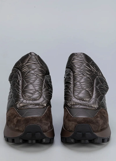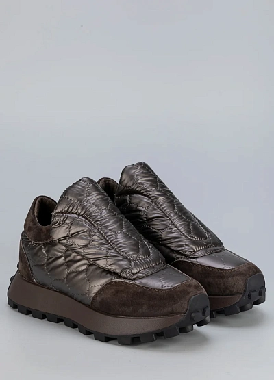 • Демисезонные женские кроссовки кроссовки Franco Manatti в оттенке глубокого шоколада с утеплённой отделкой и стёганым верхом. Модель сочетает нейлон, замшу и текстиль. Удобная конструкция с широкой подошвой обеспечивает комфорт и надёжность в любую погоду.