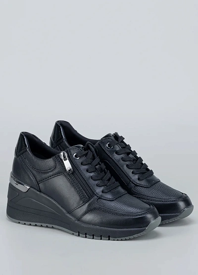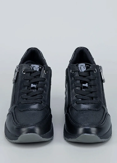 Стильные женские кроссовки Marco Tozzi на скрытой платформе сочетают удобство и элегантность. Выполнены из комбинированных материалов — кожа, текстиль и вставки с лаком. Дополнительная молния облегчает надевание. Универсальная модель для городского ритма.