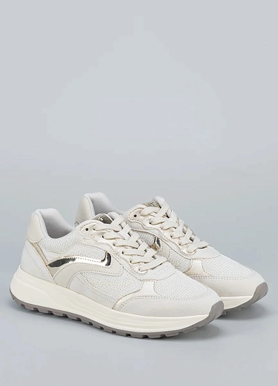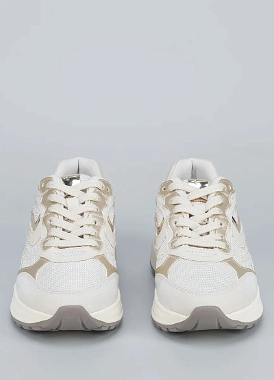 Белая пара с золотистыми акцентами идеально дополнит лёгкие образы. Удобная подошва и мягкий верх делают обувь практичным выбором для активного дня.
