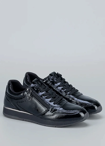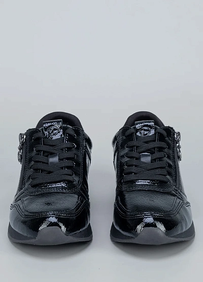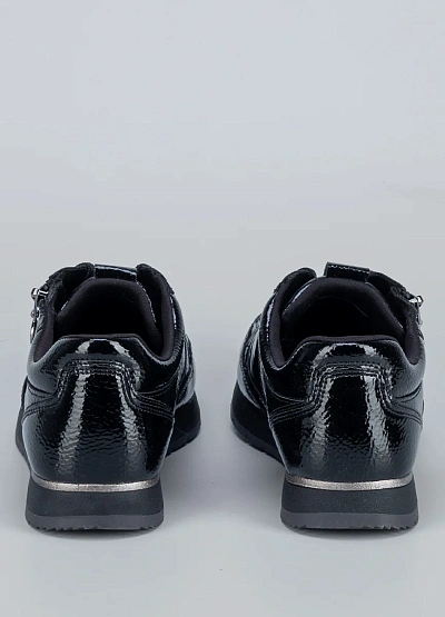 Современные кроссовки в глянцевом исполнении для тех, кто ценит практичность и стиль. Лаковый верх придаёт паре модный вид, а боковая молния позволяет надевать обувь быстро и легко.