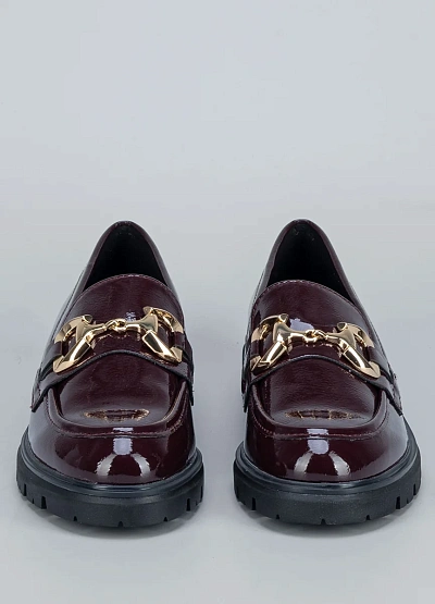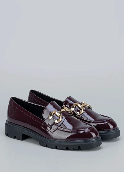 Глубокий винный оттенок и золотая пряжка придают модели статусный и благородный вид. Лаковый блеск делает пару выразительной и стильной.