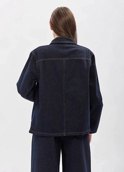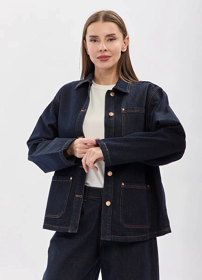 Женская рубашка джинсовая Loretta Very свободного кроя — стильная базовая модель, которая легко вписывается как в повседневные, так и в уличные образы. Куртка выполнена из плотного тёмно-синего денима с контрастной строчкой, что подчёркивает её лаконичный, но эффектный дизайн. Свободный силуэт обеспечивает комфорт и позволяет носить изделие с толстовками, свитерами и футболками. Классический воротник, накладные карманы и металлические пуговицы создают актуальный и долговечный стиль.