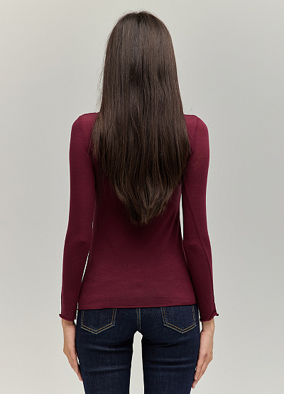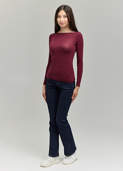 Лонгслив в бордовом оттенке добавит выразительности любому образу. Простой крой и насыщенный цвет делают его универсальным вариантом для повседневной носки.