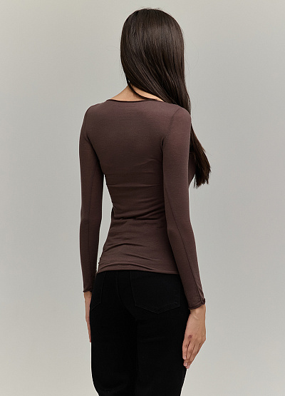 Однотонный лонгслив с длинным рукавом и округлым вырезом горловины — практичный вариант для повседневного гардероба.