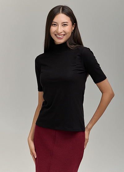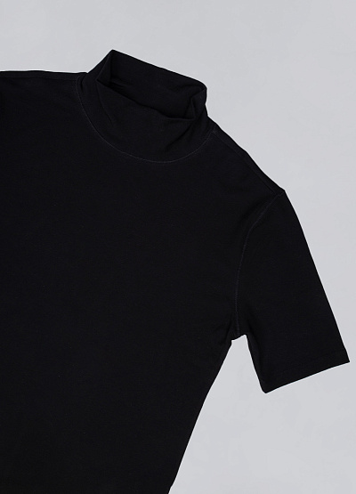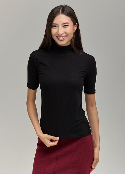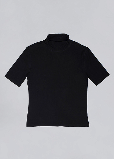 Лаконичный женский гольф с коротким рукавом и мягким воротником-стойкой станет универсальной основой для множества образов. Он подчеркнёт изящество фигуры и подарит комфорт в течение всего дня.