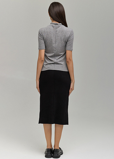 Светло-серый гольф с коротким рукавом и воротником-стойкой станет отличным дополнением к гардеробу. Его нейтральный оттенок легко комбинируется с яркими и спокойными тонами.