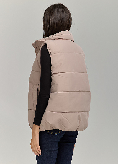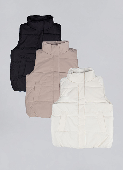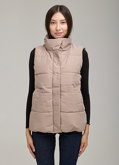 Мягкий жилет с высоким воротником и стёжкой отлично дополнит базовый гардероб. Лаконичный фасон делает его удобным для повседневной носки.