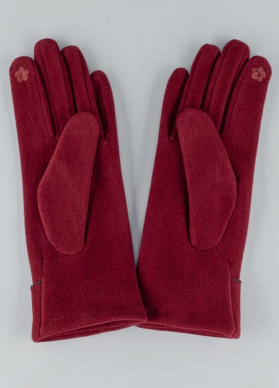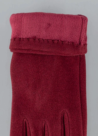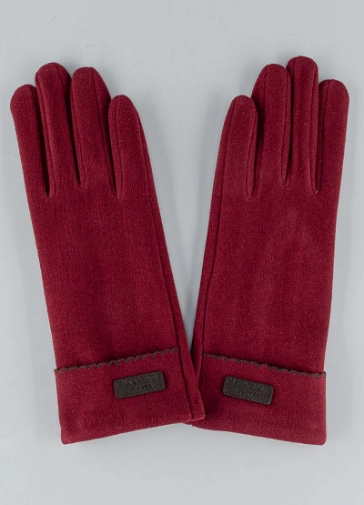 Женские перчатки насыщенного бордового цвета — элегантный аксессуар, который добавляет образу выразительности и уюта. Модель выполнена из мягкого, приятного на ощупь материала с бархатистой текстурой, благодаря чему перчатки выглядят аккуратно и благородно. Лаконичный дизайн с небольшим декоративным элементом на манжете делает их универсальными для повседневной носки и более собранных городских образов.