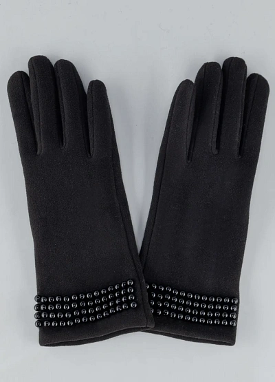 Женские перчатки в классическом чёрном цвете с лаконичным декоративным акцентом — стильное решение для холодного сезона. Модель выполнена из мягкого, приятного на ощупь материала, который обеспечивает комфорт и тепло. Украшение в виде аккуратных бусин на манжете добавляет образу сдержанной элегантности, делая аксессуар универсальным для повседневных и более собранных городских образов.