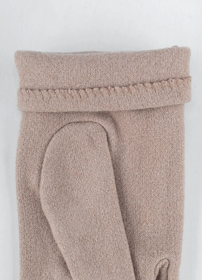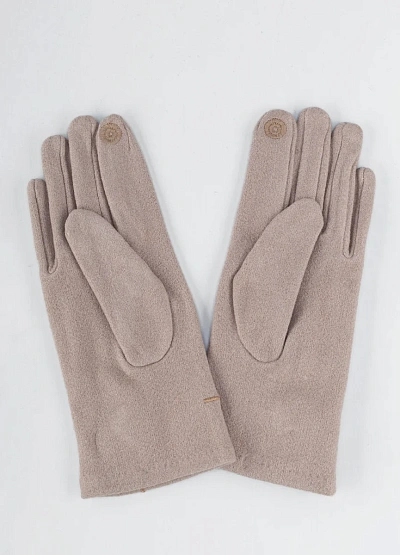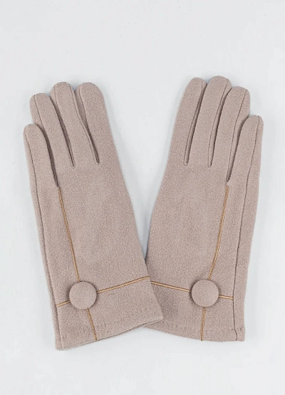 Женские перчатки светло-бежевого цвета представлены в лаконичном стиле. Модель выполнена в однотонной гамме с декоративными строчками и крупной пуговицей на запястье, что придает аксессуару аккуратный и элегантный вид.
