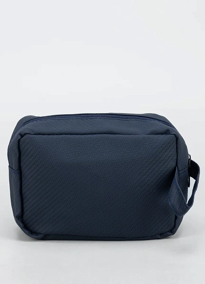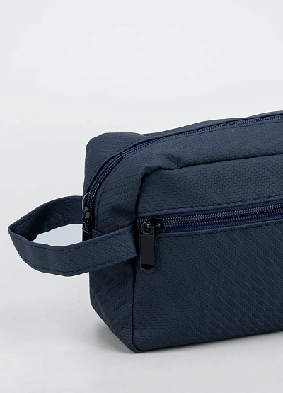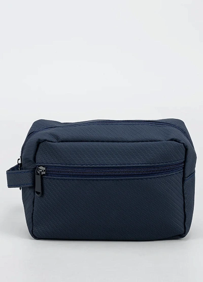 Универсальный мужской аксессуар — компактная косметичка или несессер тёмно-синего цвета. Модель выполнена в лаконичном стиле, с текстурированной поверхностью и двумя отдельными отделениями на молниях.