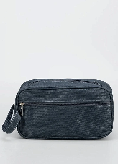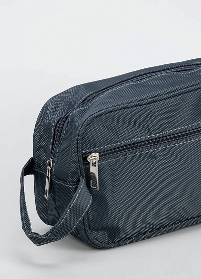 Мужская косметичка компактного размера выполнена в темно-синей цветовой гамме. Модель отличается лаконичным прямоугольным дизайном, наличием внешнего кармана на молнии и удобной ручкой сбоку.