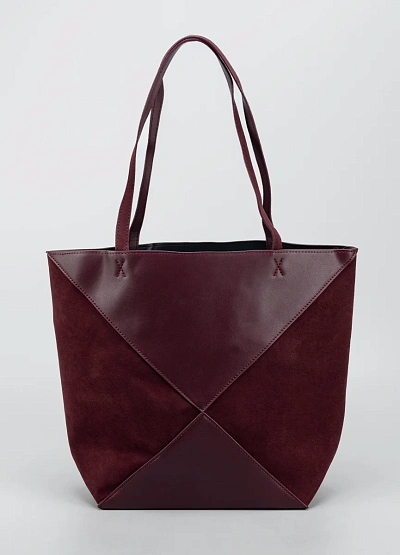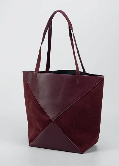 Элегантная женская сумка-шоппер в глубоком бордовом оттенке станет стильным и практичным аксессуаром для повседневных образов. Модель выполнена в лаконичном дизайне с геометрическими вставками, которые придают сумке выразительный характер. Сочетание гладкой и замшевой фактур создаёт визуальный акцент и подчёркивает премиальный внешний вид. Удобные длинные ручки позволяют комфортно носить сумку на плече, а вместительное основное отделение отлично подходит для городского ритма жизни.