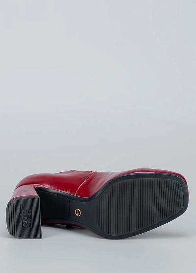 • Стильные женские туфли выполнены из гладкой красной экокожи с лёгким глянцем.