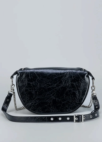 • Эта полукруглая сумка Franco Manatti — выбор для модниц, предпочитающих стиль с акцентом на детали. Глянцевая текстура с легкой жаткой, асимметричная форма и двойная цепочка с ремнем через плечо придают изделию модный и актуальный вид. Сумка эффектно завершит образ как с платьем, так и с джинсами.