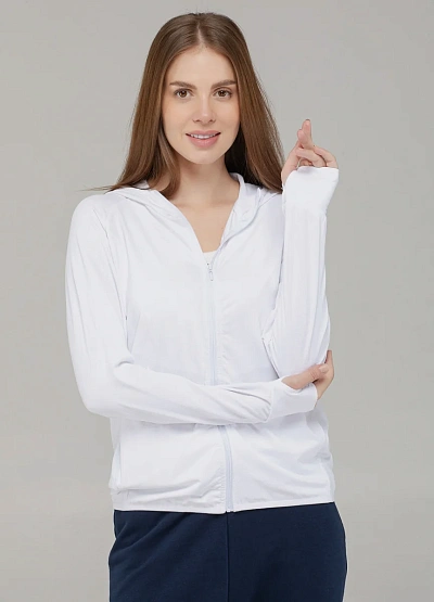 — Капюшон и длинные рукава с вырезом под палец — комфорт и защита от солнца