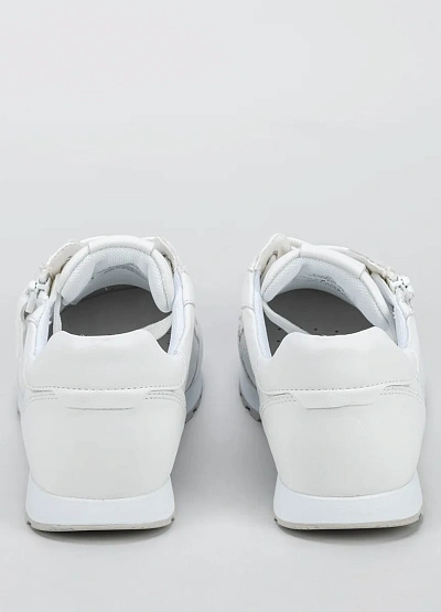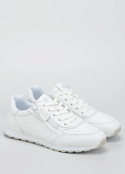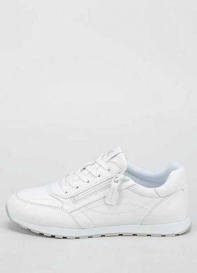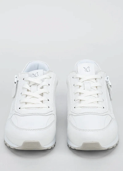 Женские кроссовки выполнены в однотонной белой цветовой гамме. Модель отличается классическим спортивным силуэтом, наличием шнуровки и боковой молнии, а также ровной подошвой. Дизайн лаконичный и универсальный.